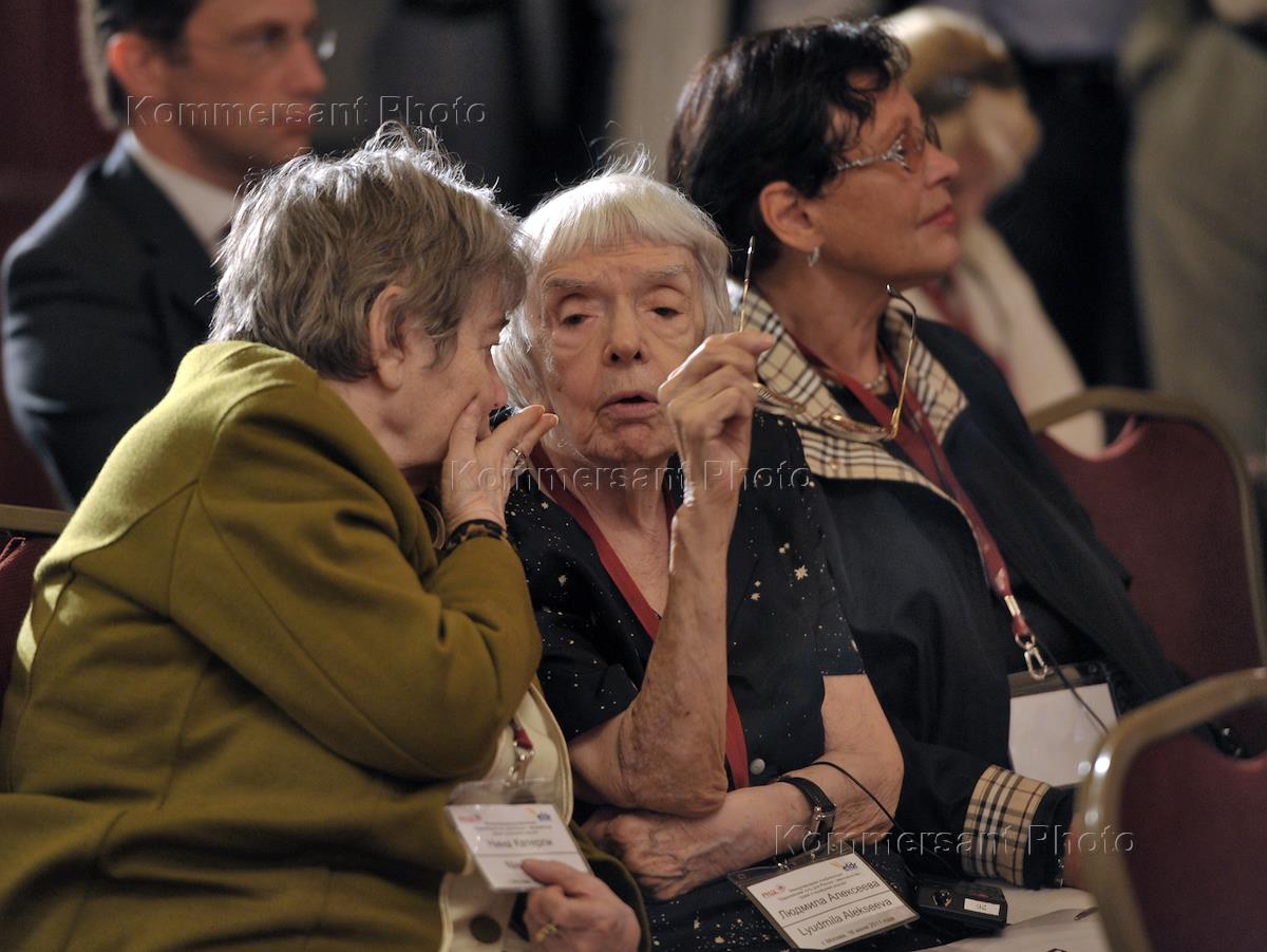Председатель Московской Хельсинской группы Людмила Алексеева (в центре) во время международной конференции Российского народно-демократического союза (РНДС) на тему "Европейский путь для России - верховенство права и нынешние реалии". Конференция прошла в гостинице "Метрополь".