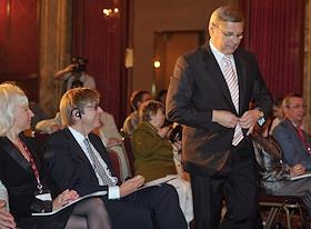 Лидер Республиканской партии Владимир Рыжков перед началом международной конференции Российского народно-демократического союза (РНДС) на тему "Европейский путь для России - верховенство права и нынешние реалии". Конференция прошла в гостинице "Метрополь".