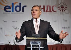 Лидер фракции "Альянс либералов и демократов за Европу" Европарламента Ги Верхофстадт во время международной конференции Российского народно-демократического союза (РНДС) на тему "Европейский путь для России - верховенство права и нынешние реалии". Конференция прошла в гостинице "Метрополь".