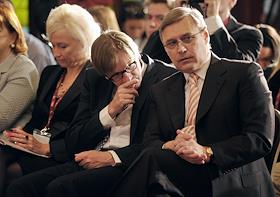 Лидер Российского народно-демократического союза (РНДС) Михаил Касьянов и председатель Московской Хельсинской группы Людмила Алексеева (вторая справа) перед началом международной конференции РНДС на тему "Европейский путь для России - верховенство права и нынешние реалии". Конференция прошла в гостинице "Метрополь".