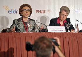Член президентского Совета по содействию развитию институтов гражданского общества и правам человека Тамара Морщакова (слева) и ведущий научный сотрудник Московского центра Карнеги Лилия Шевцова (справа) во время международной конференции Российского народно-демократического союза (РНДС) на тему "Европейский путь для России - верховенство права и нынешние реалии". Конференция прошла в гостинице "Метрополь".