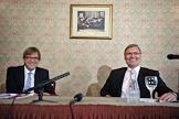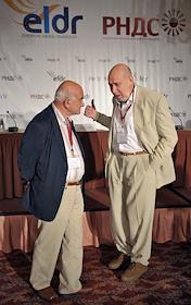 Экономист, научный руководитель Государственного Университета "Высшая школа экономики" Евгений Ясин (слева) и руководитель фонда "ИНДЕМ" Георгий Сатаров (справа) во время международной конференции Российского народно-демократического союза (РНДС) на тему "Европейский путь для России - верховенство права и нынешние реалии". Конференция прошла в гостинице "Метрополь".
