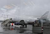 Самолет Sukhoi Superjet 100, совершивший первый рейс, приземлился в аэропорту "Пулково". Стюардессы у выхода из самолета.