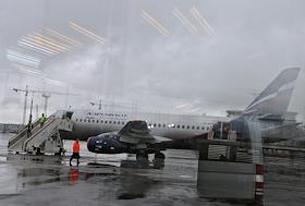 Самолет Sukhoi Superjet 100 компании "Аэрофлот", совершивший первый рейс, приземлился в аэропорту "Пулково".