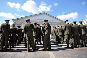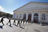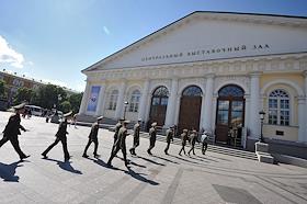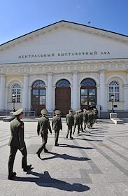 Жанровая фотография. Военнослужащие перед входом на выставку в Центральный выставочный зал "Манеж".