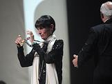 XXXIII Московский международный кинофестиваль (ММКФ). Актриса Яна Поплавская (справа) с сыном Никитой (слева) на церемонии открытия фестиваля в кинотеатре "Пушкинский".