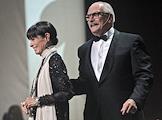 XXXIII Московский международный кинофестиваль (ММКФ). Актриса Надежда Михалкова (слева) и режиссер Резо Гигинеишвили (справа) на церемонии открытия фестиваля в кинотеатре "Пушкинский".