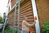 Жанровая фотография. Бутово. Мужчины красят стены частного жилого дома.
