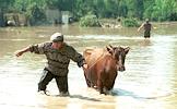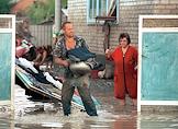 Наводнение в станице Барсуковской. Из-за аварийного сброса воды из Кубанского водохранилища были разрушены жилые дома, учреждения, водопроводы, системы фильтрации воды и канализация. Общее число жертв по Ставрополью составляет 33 человека. Два поросенка спасаются от наводнения на крыше.