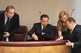 Министр спорта, туризма и молодежной политики России Виталий Мутко (второй слева), его заместители Юрий Нагорных (слева), Наталья Паршикова (вторая справа) и полномочный представитель правительства России в Государственной думе России Андрей Логинов (справа) на заседании Государственной думы России.
