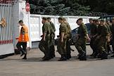 Виды поселка Ватутинки. Военнослужащие у ворот военной части.