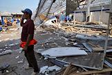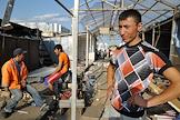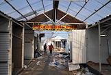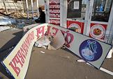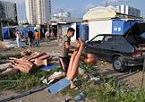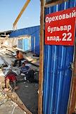 Снос Красногвардейского рынка. Табличка с адресом на стенке одного из катейнеров "Ореховый бульвар, влад. 22".