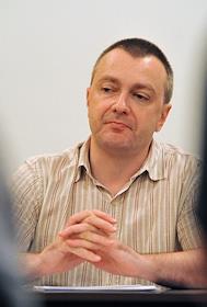 Основатель и бывший лидер НСО (Национал-социалистическое общество) Дмитрий Румянцев во время интервью.