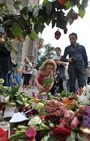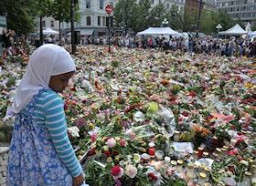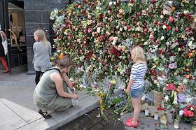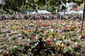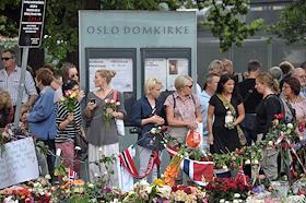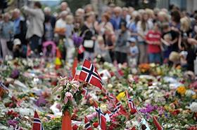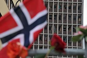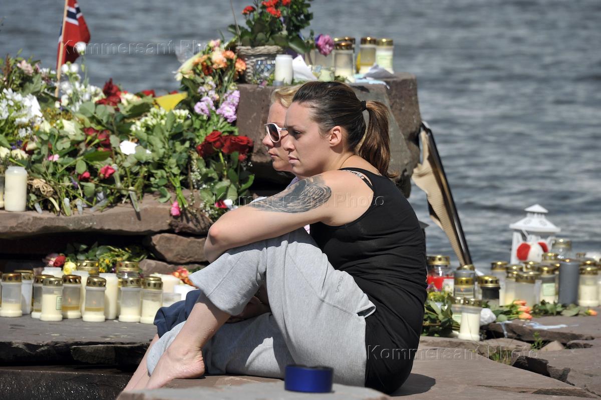 Местные жители приносят цветы в память о погибших в результате двойного террористического акта, произошедшего в центре Осло и на острове Утойя 22 июля 2011 года.