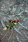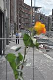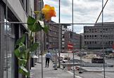 Цветок, привязанный к дорожному указателю, в память о погибших в результате двойного террористического акта, произошедшего в центре Осло и на острове Утойя 22 июля 2011 года.