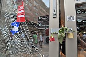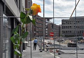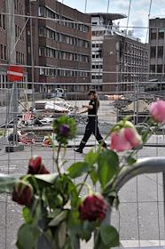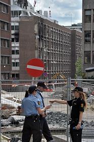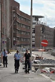 Последствия террористического акта у здания норвежского правительства в центре Осло 22 июля 2011 года.