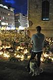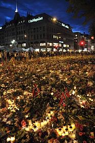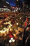 Местные жители приносят цветы и зажигают свечи в память о погибших в результате двойного террористического акта в центре Осло и на острове Утойя 22 июля 2011 года.
