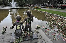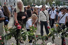 Акция "Марш роз", посвященая жертвам двойного террористического акта в центре Осло и на острове Утойя 22 июля 2011 года.