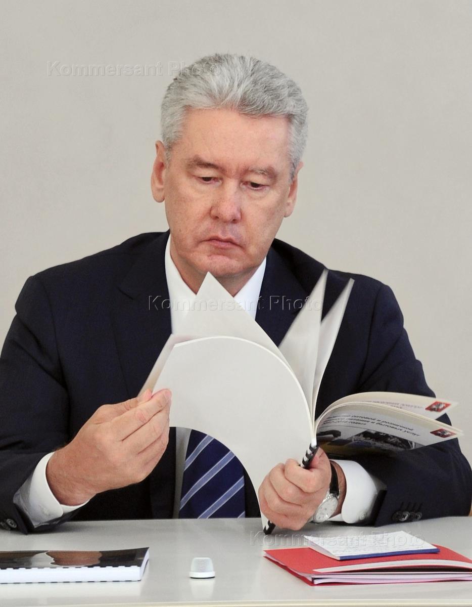 Мэр Москвы Сергей Собянин на встрече с представителями бизнеса в сфере торговли и услуг. Встреча прошла в мэрии Москвы.