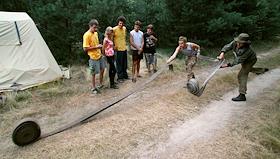 Участники противопожарного лагеря Гринпис (Greenpeace) Россия во время тренировки. Раскатка пожарных рукавов.