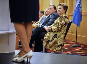 Заместитель мэра Москвы в правительстве Москвы по социальной политике Людмила Швецова (справа) на очередном этапе московских праймериз (предварительных выборов) для отбора кандидатов в депутаты Государственной думы России от "Единой России" и "Общероссийского народного фронта".