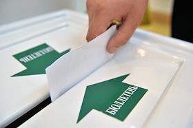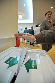 Очередной этап московских праймериз (предварительных выборов) для отбора кандидатов в депутаты Госдумы от "Единой России" и "Общероссийского народного фронта". Урна для голосования.