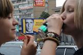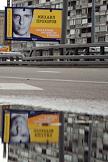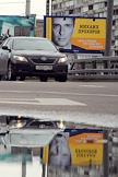Рекламный плакат с портретом лидера партии "Правое дело" Михаила Прохорова на Третьем транспортном кольце. Надпись на плакате "Сила в правде, кто прав, тот и сильнее!".