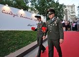 Актеры Гоша Куценко (второй слева), Егор Бероев (третий слева) и Ксения Алферова (в центре) во время акции памяти, посвященная событиям в Южной Осетии в августе 2008 года. Акция прошла на Патриарших прудах. Егор Бероев и Ксения Алферова.