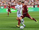 Чемпионат России по футболу. Премьер-лига, 20-й тур. Полузащитники команд ЦСКА Кейсуке Хонда (слева) и "Рубина" Кристиан Нобоа (справа) во время матча между командами "Рубин" (Казань) - ЦСКА (Москва). Матч прошел на стадионе "Центральный".