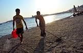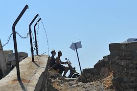 Виды Бодрума. Мужчины разгружают фургон с питьевой водой.