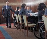 Вице-президент общероссийской общественной организации "Всероссийского ордена Трудового Красного знамени общества слепых" Владимир Вшивцев (слева), менеджер проектов Региональной общественной организации инвалидов "Перспектива" Наталья Присецкая (в центре) и председатель правительства России Владимир Путин (справа) во время встречи с представителями общественных организаций и обществ инвалидов России. Встреча прошла в зале президиума Дома правительства России.