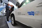 Руководитель Организационного комитет по проведению зимних Олимпийских игр "Сочи 2014" Дмитрий Чернышенко (в центре) и генеральный директор компании Volkswagen Group Rus Маркус Озегович (справа) во время старта роуд-шоу SochiDrive, совместного проекта концерна Volkswagen и Оргкомитета "Сочи 2014". Старт роуд-шоу состоялся на Воробьевых горах.
