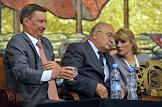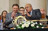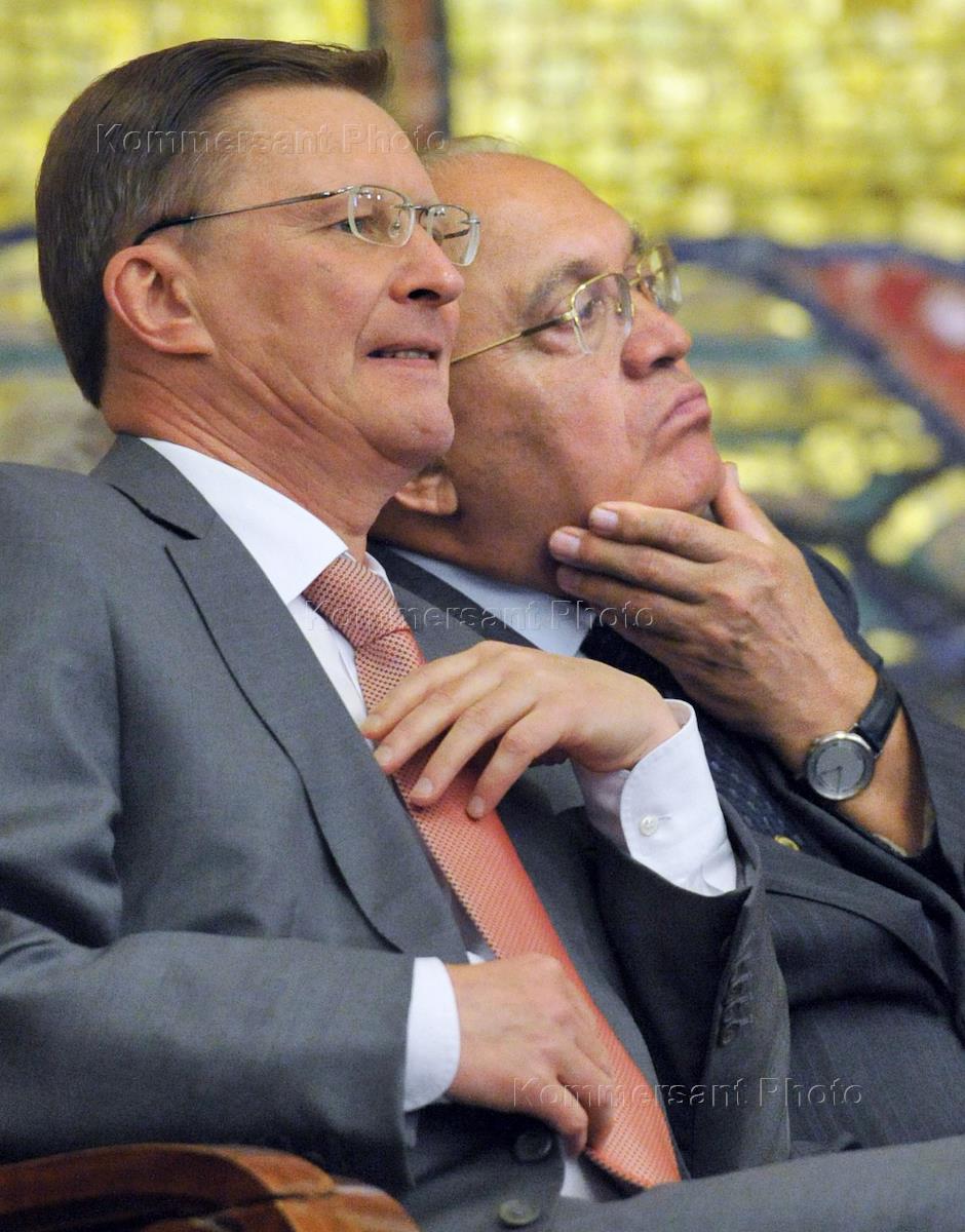 Генеральный директор Европейского Центра ядерных исследований ЦЕРН Рольф-Дитер Хойер (слева) и ректор Московского государственного университета (МГУ) имени М.В.Ломоносова Виктор Садовничий (справа) на церемонии посвящения первокурсников в студенты. Церемония прошла в МГУ.