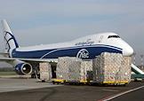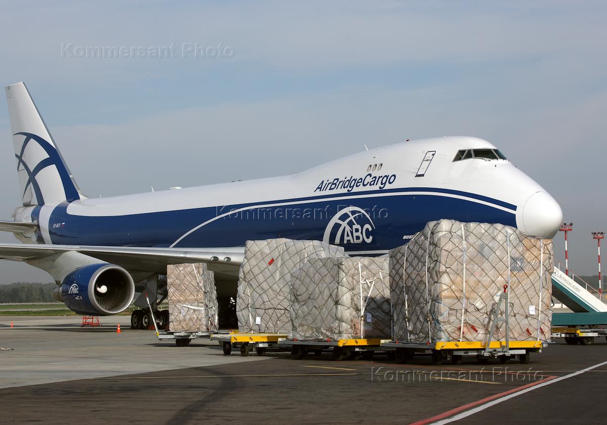 Самолет российской грузовой компании AirBridgeCargo на взлетно-посадочной полосе.