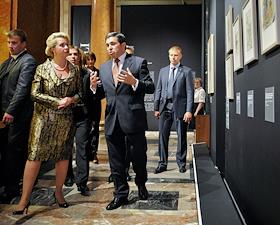 Супруга президента России Светлана Медведева (в центре) и управляющий директор фонда "Гала-Сальвадор Дали" Хуан Мануэль Севильяно Комполанс (справа) на церемонии открытия выставки испанского художника Сальвадора Дали из собрания Фонда "Гала - Сальвадор Дали" в Государственном музее изобразительных искусств (ГМИИ) имени А.С.Пушкина.