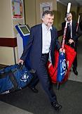 Генеральный директор Агентства по ипотечному жилищному кредитованию Александр Семеняка перед началом благотворительного матча по хоккею "Под флагом добра" во Дворце спорта "Сокольники".
