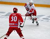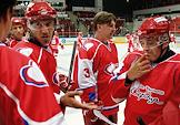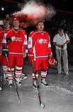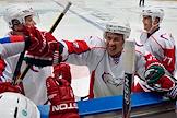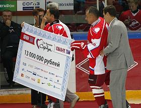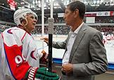 Президент Федерации хоккея Москвы, председатель Совета директоров ХК "Спартак" Сергей Менделеев (слева) во время благотворительного матча по хоккею "Под флагом добра" во Дворце спорта "Сокольники".
