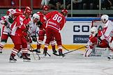 Председатель правления Пенсионного фонда России Антон Дроздов (в центре) и олимпийский чемпион по хоккею, генеральный менеджер ХК "Витязь" Алексей Жамнов (второй справа) во время благотворительного матча по хоккею "Под флагом добра" во Дворце спорта "Сокольники".