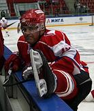 Тренер по хоккею Александр Якушев перед началом благотворительного матча по хоккею "Под флагом добра" во Дворце спорта "Сокольники".