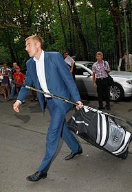 Нападающий сборной России по хоккею и клуба "Вашингтон Кэпиталс", чемпион мира Александр Овечкин перед началом благотворительного матча по хоккею "Под флагом добра" во Дворце спорта "Сокольники".