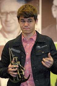 Норвежский шахматист Магнус Карлсен во время Международного шахматного турнира "Мемориал Михаила Ботвинника" 2011 г. в Центральном Доме Шахматиста (ЦДШ) им. М.М.Ботвинника.