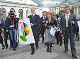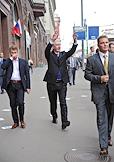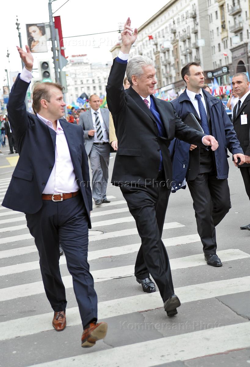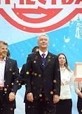 Мэр Москвы Сергей Собянин (в центре) во время проведения торжественных мероприятий, посвященных празднованию Дня города.