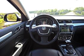 Тест-драйв автомобиля Skoda Superb Combi (Шкода Суперб Комби). Рулевая колодка и панель управления автомобиля.