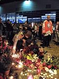 Болельщики ярославской хоккейной команды "Локомотив", погибшей в авиакатастрофе на самолете Як-42 авиакомпании "Як-сервис" 7 сентября 2011 года в Ярославле, во время возложения цветов и зажигания свечей у стадиона "Арена-2000" в память о погибших.