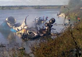 Место крушения самолета Як-42 авиакомпании "Як-сервис" с основным составом хоккейной команды ярославского "Локомотива" на борту самолета.