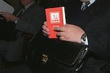 Устав КПРФ в руках делегата на пленуме ЦК КПРФ, который состоялся в здании Росагропромстрой.
