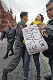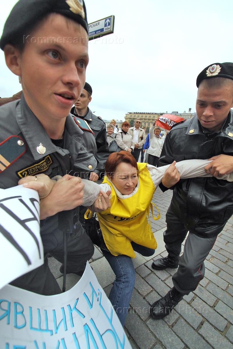 Несанкционированный митинг обманутых дольщиков прошел на Манежной площади. Сотрудники правоохранительных органов задерживают участников митинга.