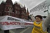 Участники несанкционированного митинга обманутых дольщиков. Митинг прошел на Манежной площади.