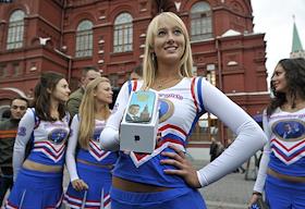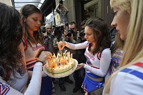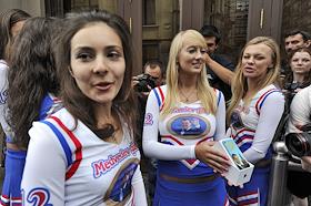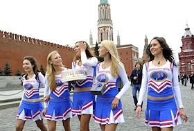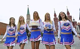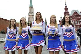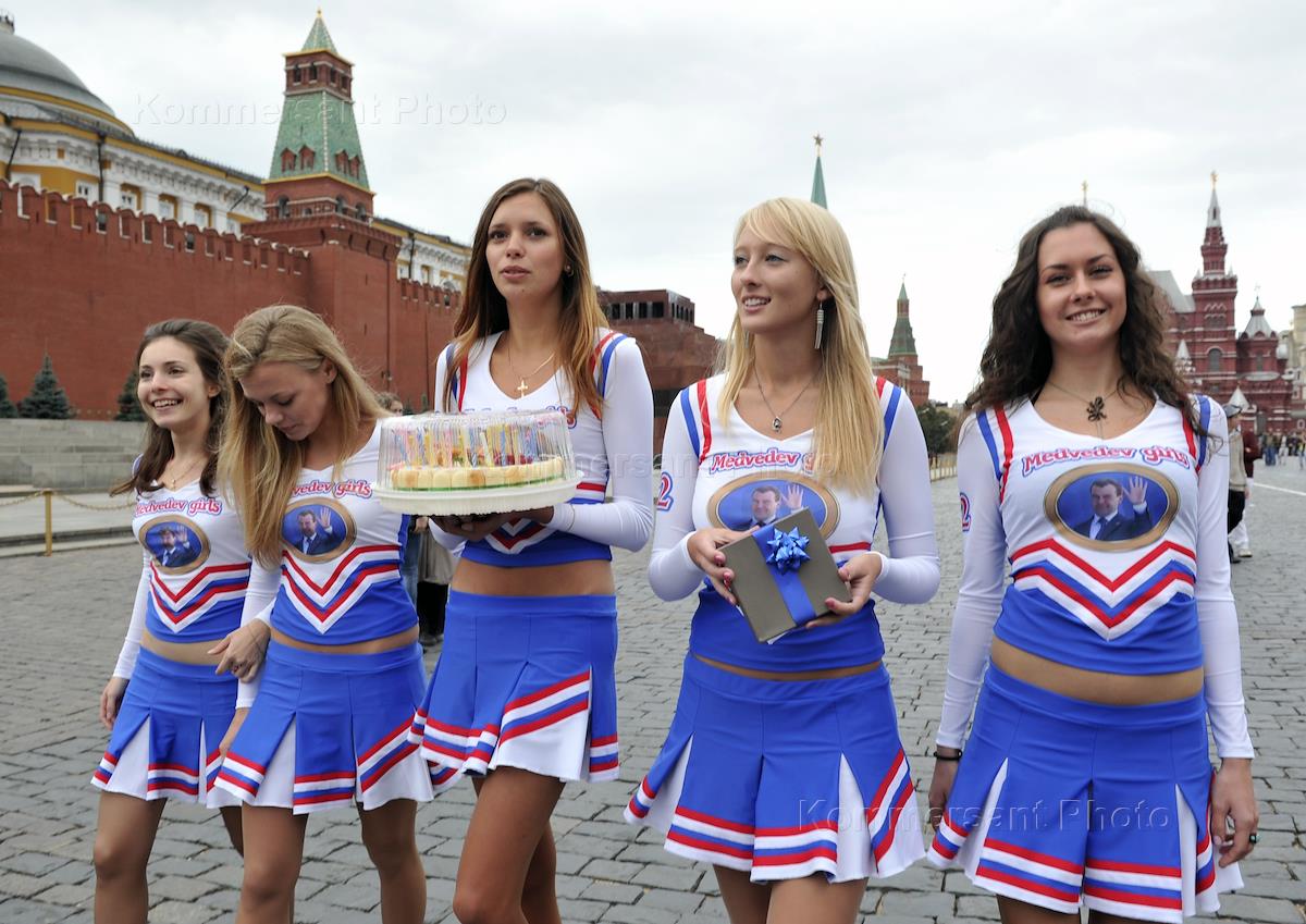 Поздравление с днем рождения президента РФ Дмитрия Медведева, активисты фан-клуба Medvedev Girls и группой "Медведев - наш Президент!" на Красной площади.
