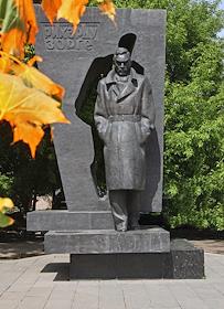 Monument to Soviet intelligence officer Richard Zorge at the intersection of the Zorge street with Khoroshevsky highway.